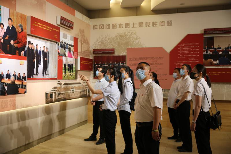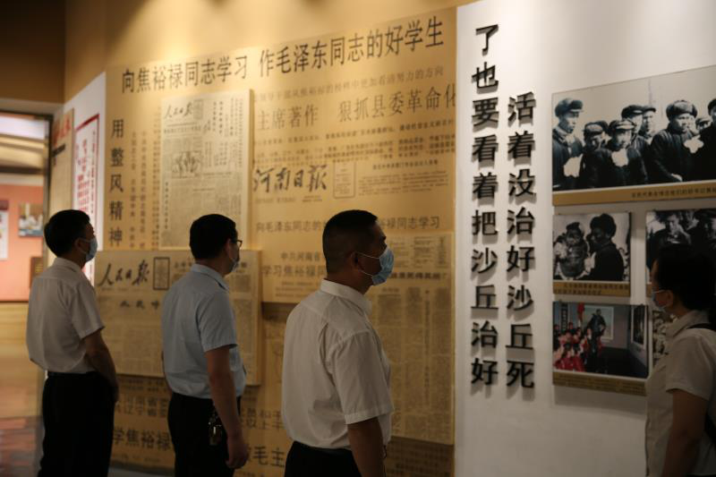 在每一處參觀點(diǎn),大家或駐足觀看,或認(rèn)真聆聽(tīng),或低頭沉思,或眼含熱淚,深切感懷焦裕祿同志的崇高且偉大精神。在焦裕祿紀(jì)念像前,大家重溫入黨誓詞。