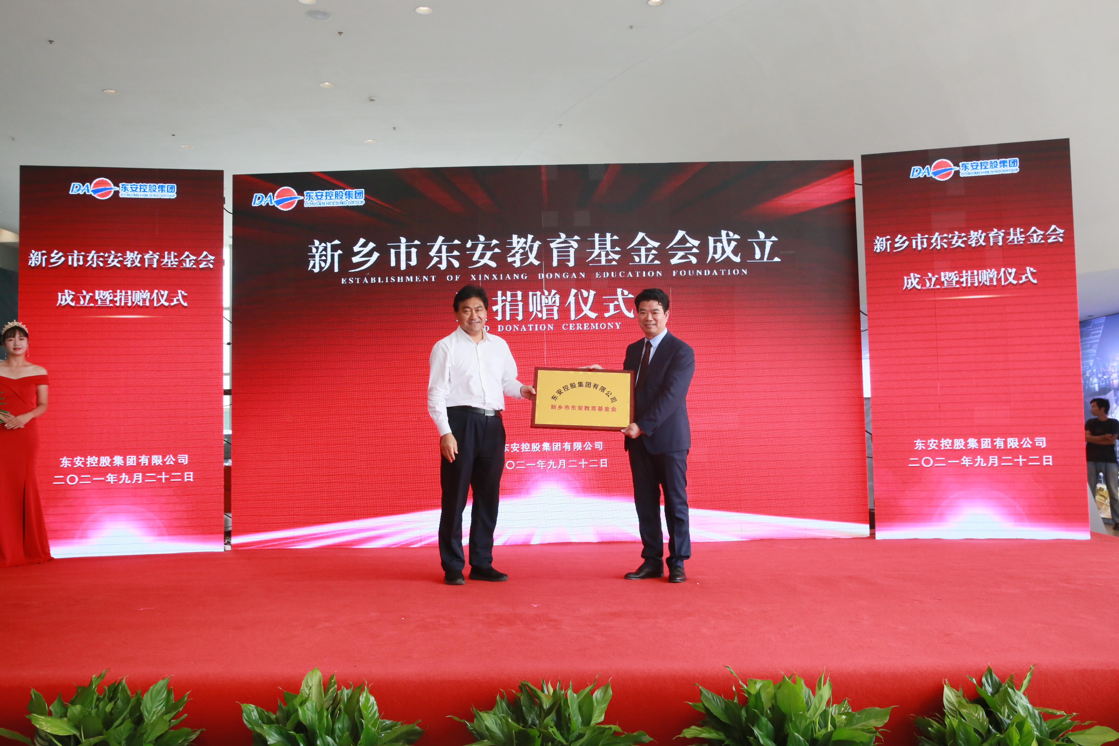 儀式上,新鄉(xiāng)市人大常委會(huì)主任王樂(lè)新向東安控股集團(tuán)董事長(zhǎng)、東安教育基金會(huì)理事長(zhǎng)堵召輝,授予“新鄉(xiāng)市東安教育基金會(huì)牌匾”。