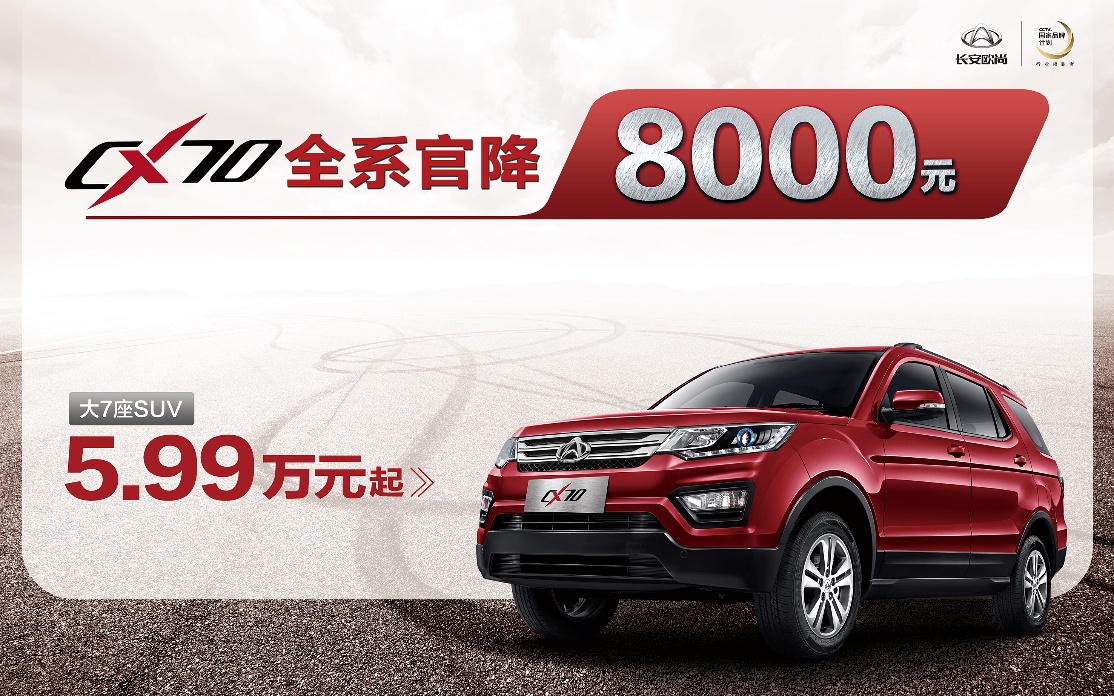 長安歐尚官方公布,即日起長安CX70全系車型官方售價大幅下調(diào),降幅高達(dá)10000元!優(yōu)惠力度大。